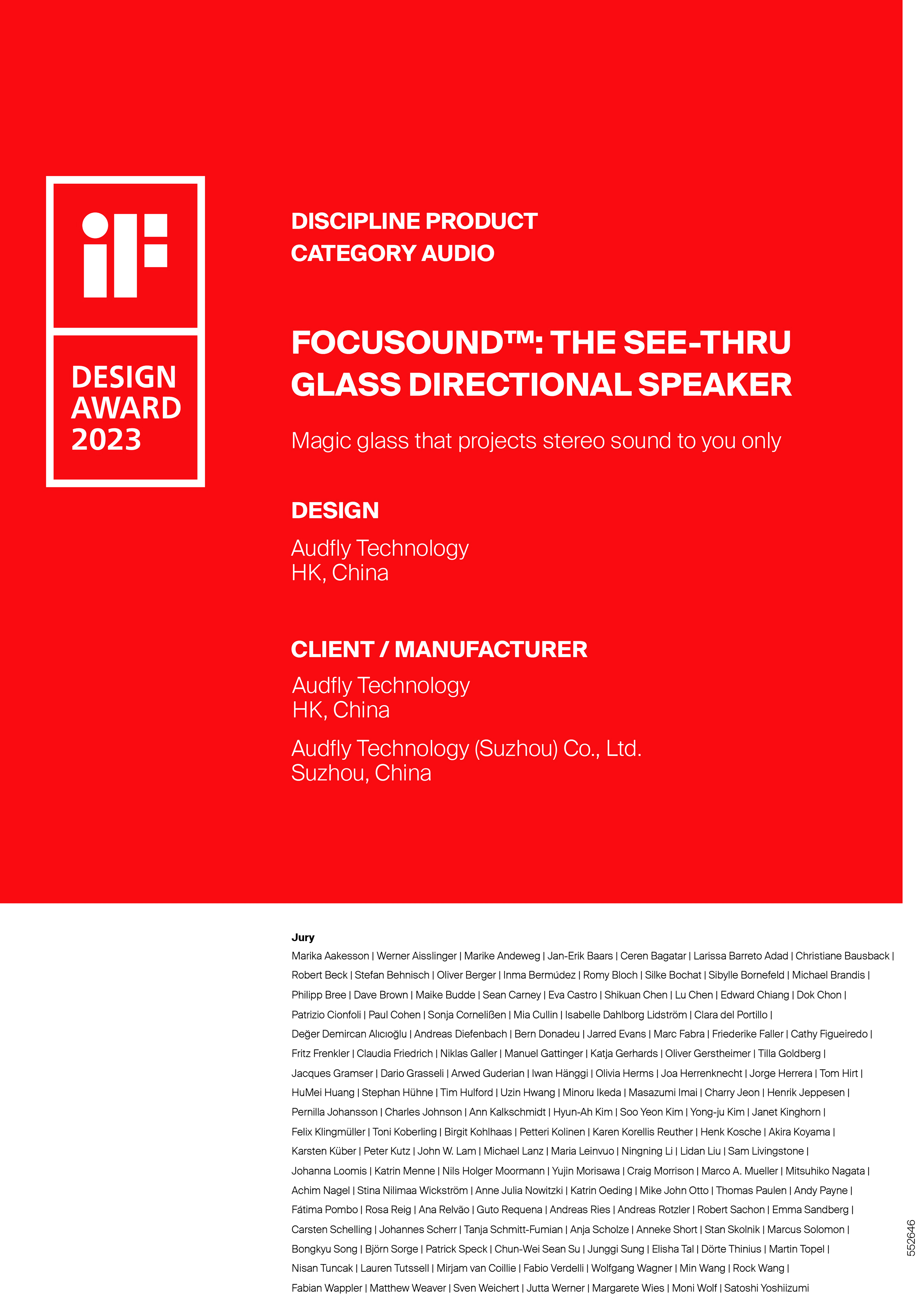 近日,德國iF設(shè)計(jì)獎(jiǎng)組委會(huì)公布了2023年iF設(shè)計(jì)獎(jiǎng)最終名單,清聽聲學(xué)Focusound™聚音屏憑借出色的創(chuàng)意設(shè)計(jì)和交互體驗(yàn),從56個(gè)國家/地區(qū)的11000多件入圍作品中脫穎而出,榮獲“2023年iF設(shè)計(jì)獎(jiǎng)”。